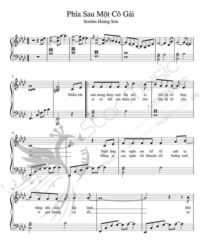 Việt Thương giới thiệu sheet nhạc piano Phía Sau Một Cô Gái (SooBin Hoàng Sơn), các bạn có thể tải về tập luyện trên đàn piano, đàn organ, guitar.