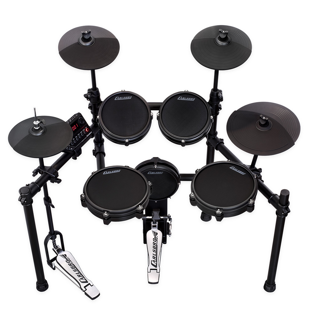 Các mặt gõ : 04 mặt gõ trang bị mặt lưới đan ( mesh head ) cho độ nảy như mặt trống thật, chống ồn và có bộ nhận tín hiệu đôi ( dual trigger ) cho Tom vs Snare / 04 lá cymbals có bọc lớp cao su chống ồn: