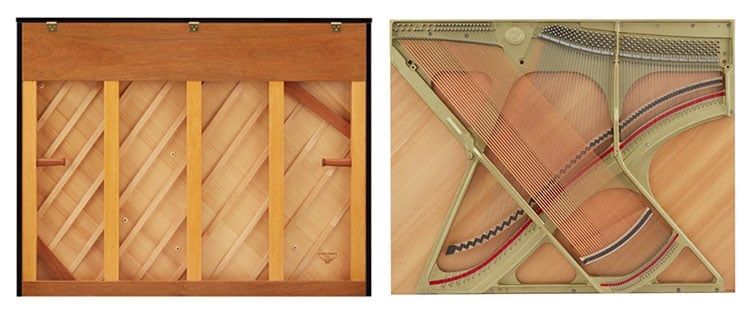 Bảng cộng hưởng (soundboard) được làm bằng gỗ vân sam nguyên tấm gọt thon