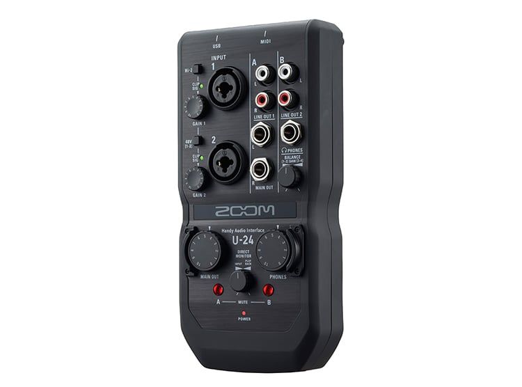 Zoom U-24 được trang bị một bộ sưu tập thiết yếu các đầu vào và đầu ra để ghi âm được sắp xếp hợp lý. Hai đầu vào kết hợp với các núm điều khiển thu phóng độc lập và các chỉ báo mức đa màu cho phép bạn kết nối micrô, bàn phím, bộ trộn và hơn thế nữa. Công suất ảo 48V có thể được cung cấp cho cả hai đầu vào và đầu vào 1 hỗ trợ Hi-Z để kết nối guitars, bass hoặc các công cụ thụ động khác. Đầu vào và đầu ra MIDI cho phép bạn sử dụng các thiết bị như bàn phím, bộ điều khiển, bộ tổng hợp và trống.
